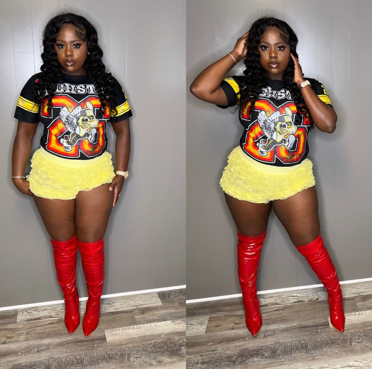 Yellow ruffle shorts